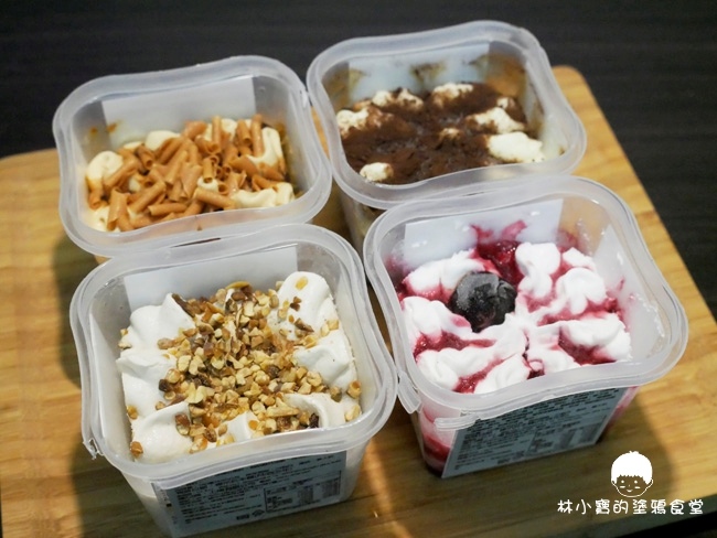 ▲有四種口味(開心果、提拉米蘇、焦糖奶酪、黑櫻桃果醬)